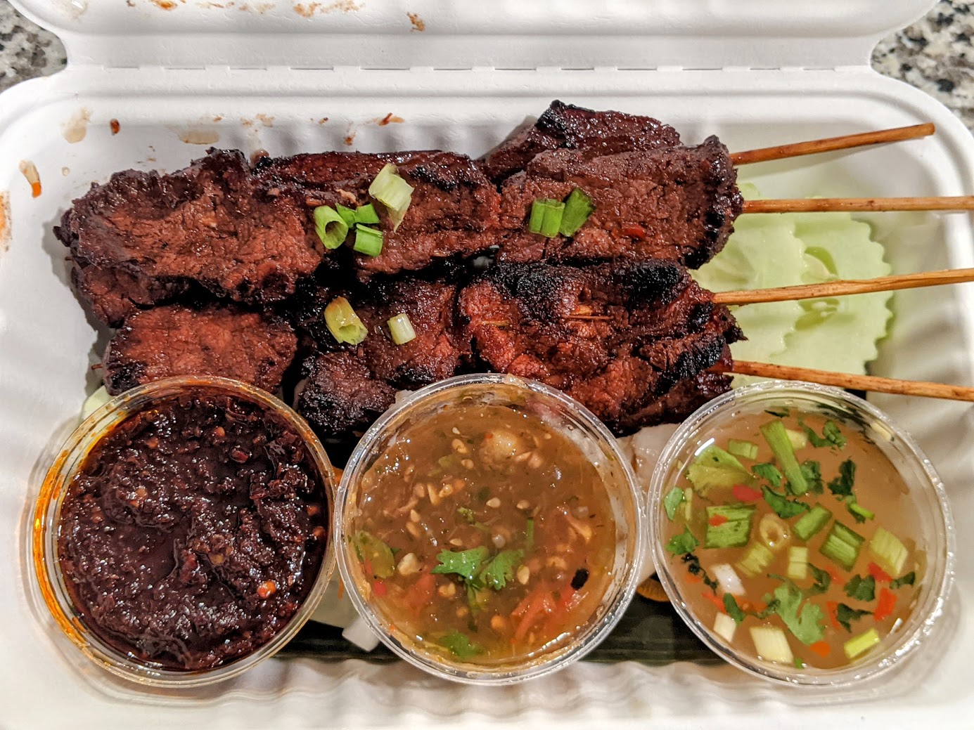 Best Dish: Beef Teriyaki Skewers with the Jeow Flight of dipping sauces (Jeow Bong, Jeow Mak Len, and Jeow Sum)