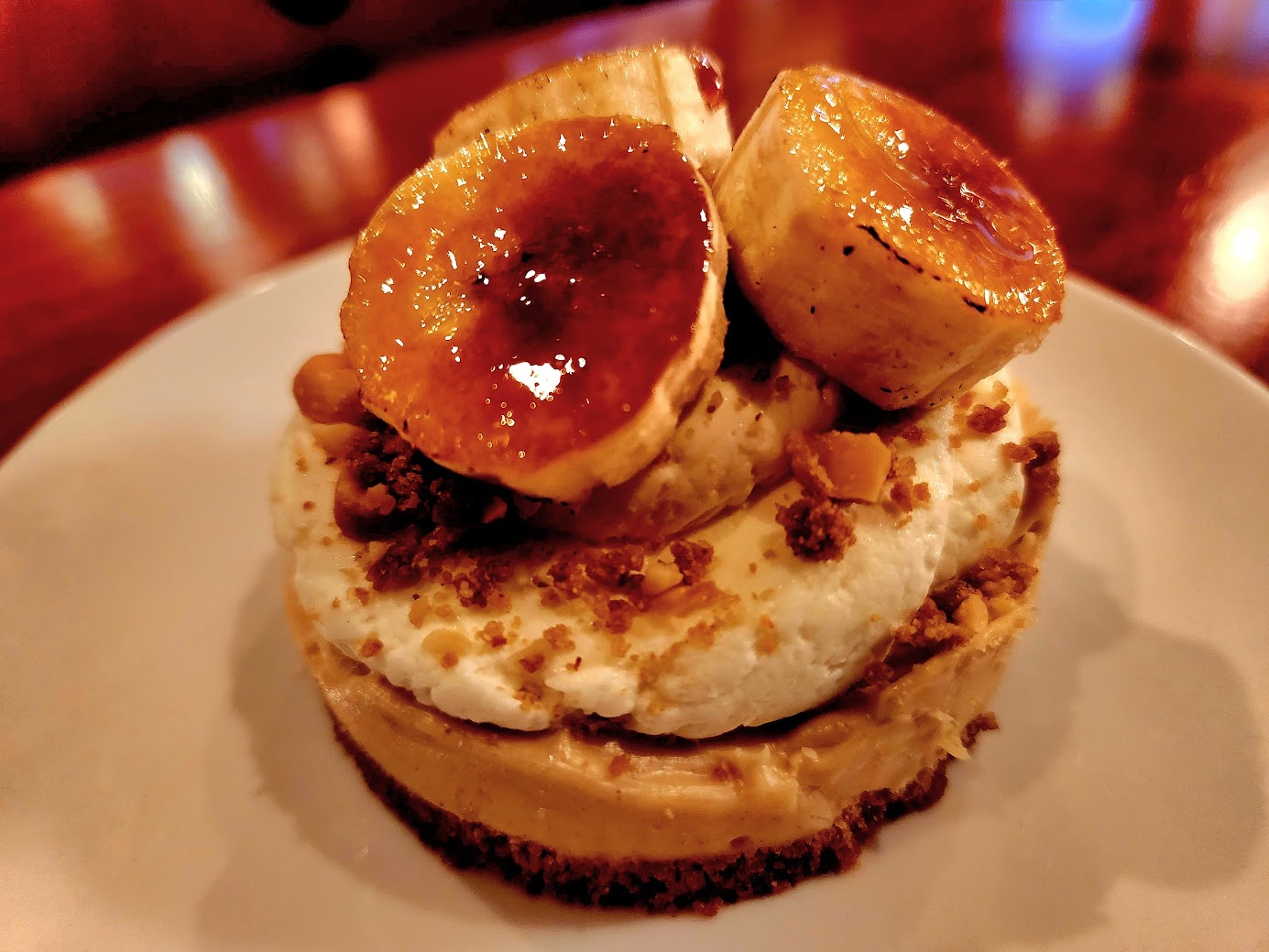 Ok James Beard Award-winning Chef Dane Baldwin, we can see why people are paying attention. Our guess is, the critics knew to order dessert - this dessert. This circular pie is comprised of more than just your regular peanut butter pie; it boasts an Italian buttercream, candied peanuts and beautifully brûléed bananas, all atop a buttery graham cracker crust. This doesn't look like your average slice of pie, and it doesn't taste it either (and let's face it, regular pie is already pretty darn good).