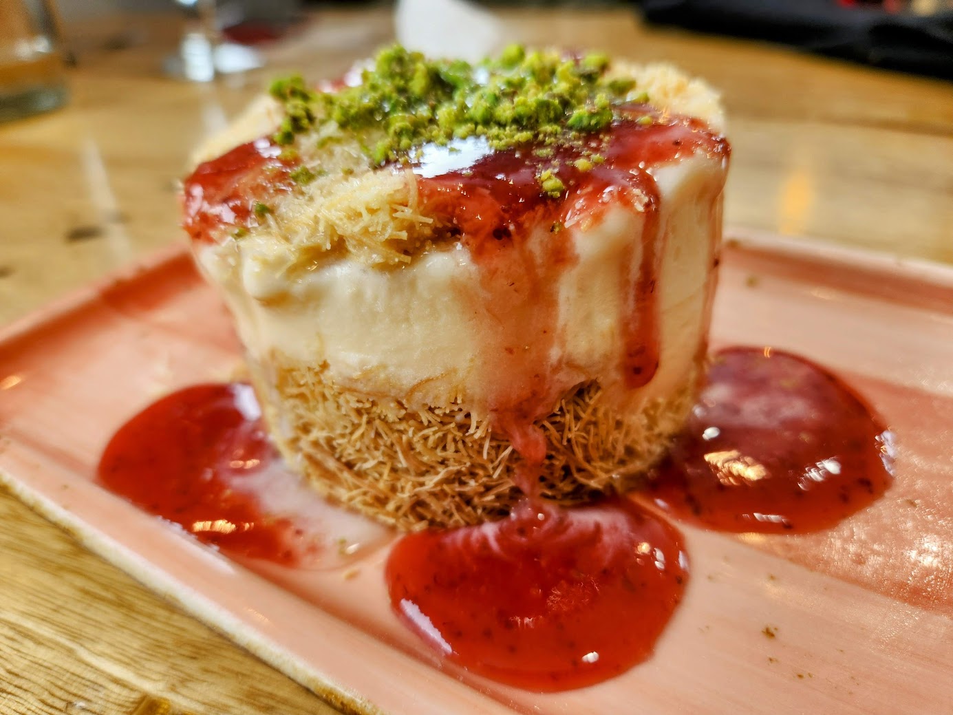 You might be surprised to see a Lebanese restaurant at the top of our dessert list, but you shouldn't be. When it comes to dessert, it seems that Phyllo dough is an under-utilized ingredient in many parts of the world. At the same time, it is key to the desserts of some cultures, and brings us prevalent favorites like Baklava. With such large entrees and to-die-for hummus at Lebnani House, it was a twist of fate that we ended up ordering dessert at all as it was comped due to a longer wait and some order mix-ups. But thank the sugar gods for those service blunders that night, because this was how we discovered the Ice Cream Othmaliya- baked shredded phyllo dough with a vanilla ice cream center, drizzled in a berry simple syrup and garnished with pistachio. As if the satisfying textures and a balance in sweetness were not enough, this dish was also quite pleasing to the eye.