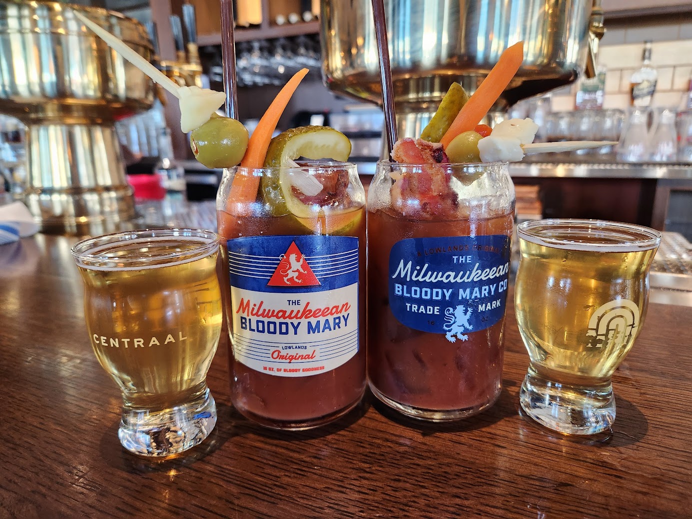 One time when ordering a Bloody Mary in Florida, Allison forgot where she was and asked the bartender if they offered beer chasers with their bloodies. The bartender's response? "You're in dreamland honey!" Well in Milwaukee, the chaser is a reality and the dream is real. Milwaukee knows what people want on their Bloody Mary- which is an assortment of crazy and wild toppings, accompanied by a beer chaser (preferably from a local brewery).
