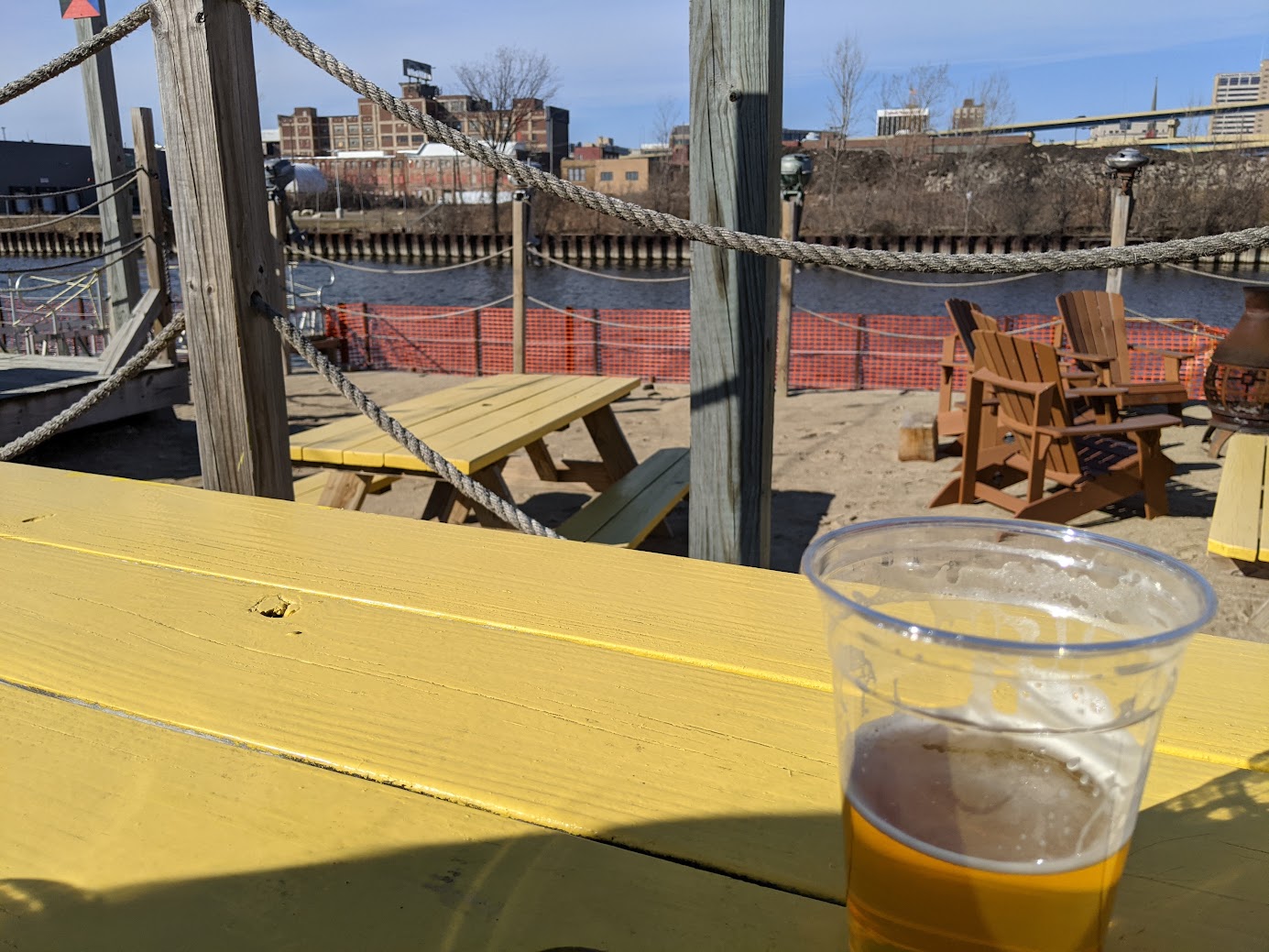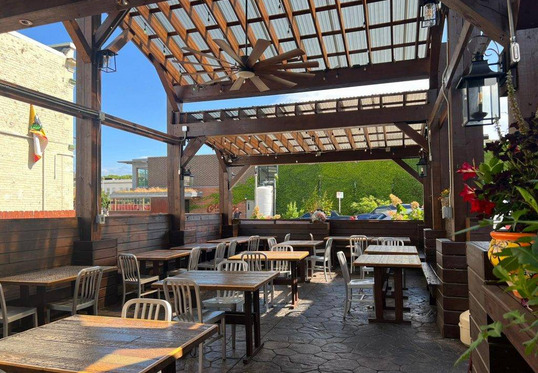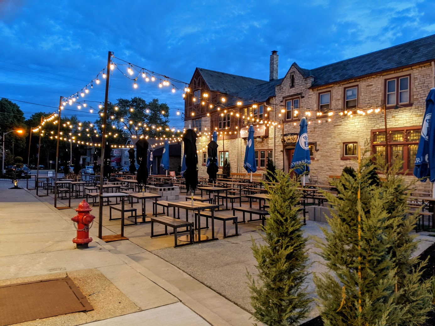 Matty's has what you might call a "Mega Patio", complete with a theater for screenings or live music, outdoor bar and tap, quick service options for food, fire places, games and more. You can also access their full menu on the patio to the front of the restaurant, and you'll often find an event in progress on their elevated patio in the back. The atmosphere is lively if not a little chaotic, and full of Wisconsin vibes and they serve some solid bar food with many side options.