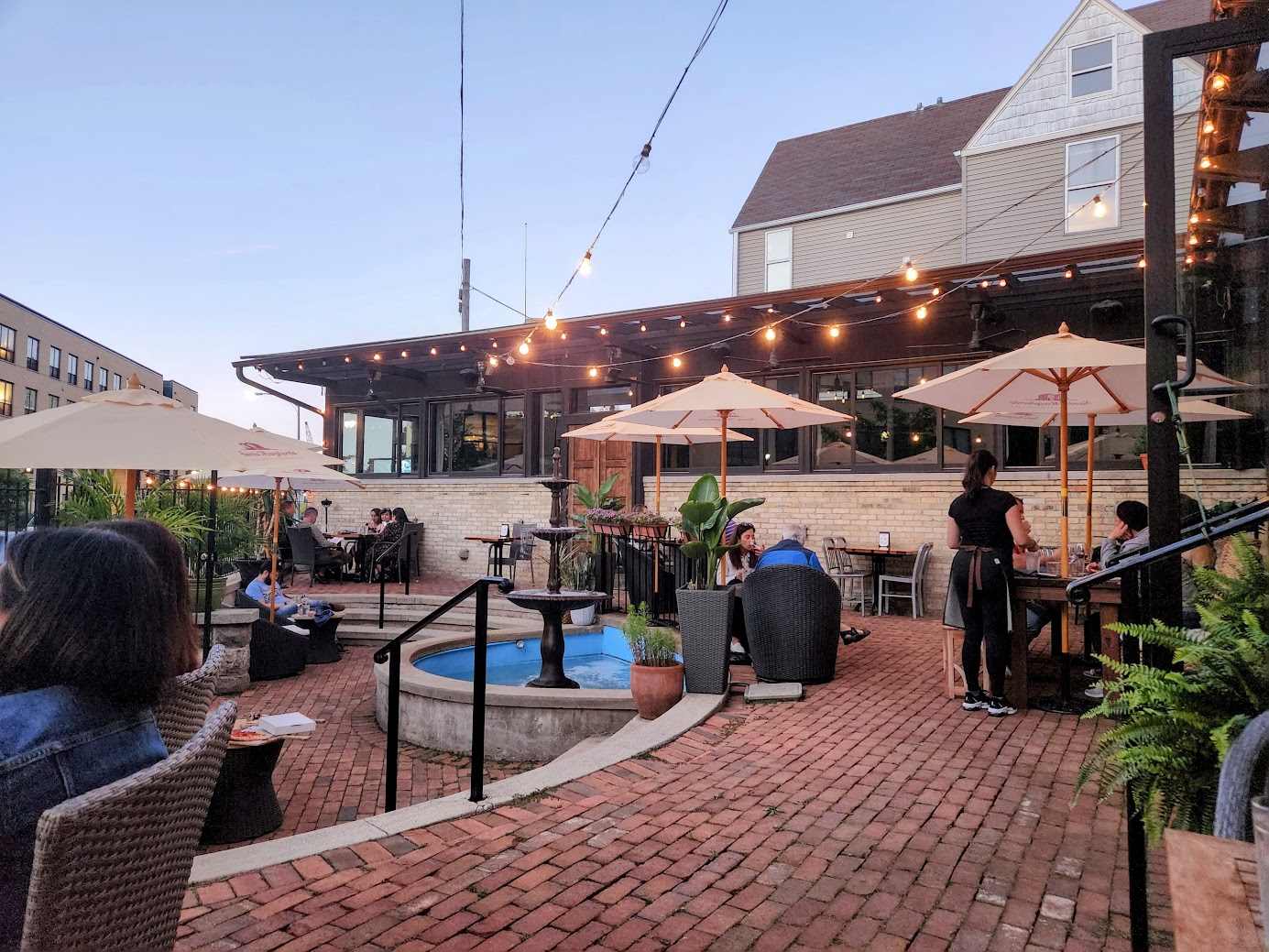 Located in Milwaukee's Lower East Side, Tauro Cocina offers a unique selection of Mexican-Italian fusion dishes, but also a very pleasing to the eye patio. The charm can be attributed to its red brick deck, cute furniture and umbrellas, and most notably a gorgeous fountain centerpiece.